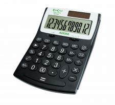 The Aurora EC707 large desk EcoCalc, is made from recycled plastic, powered entirely by light and is totally battery free. It has a large 12 digit LCD display for easy viewing, hard plastic keys and large numerals for ease of use and Aurora’s patented long equals bar to enable speedy calculations.