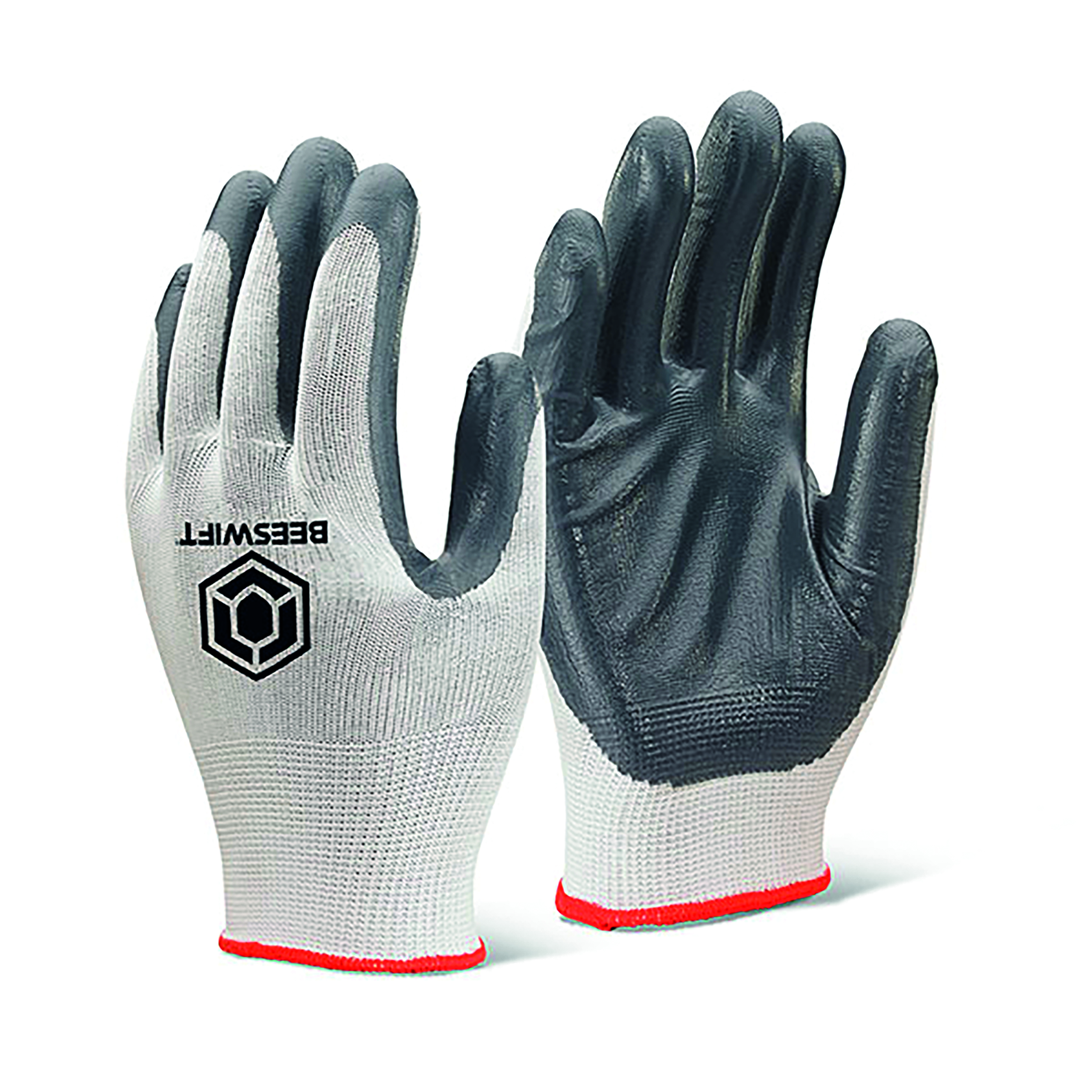 Beeswift Nitrile P/C Polyester Gloves Grey Medium (Pack of 10) EC7NGYM