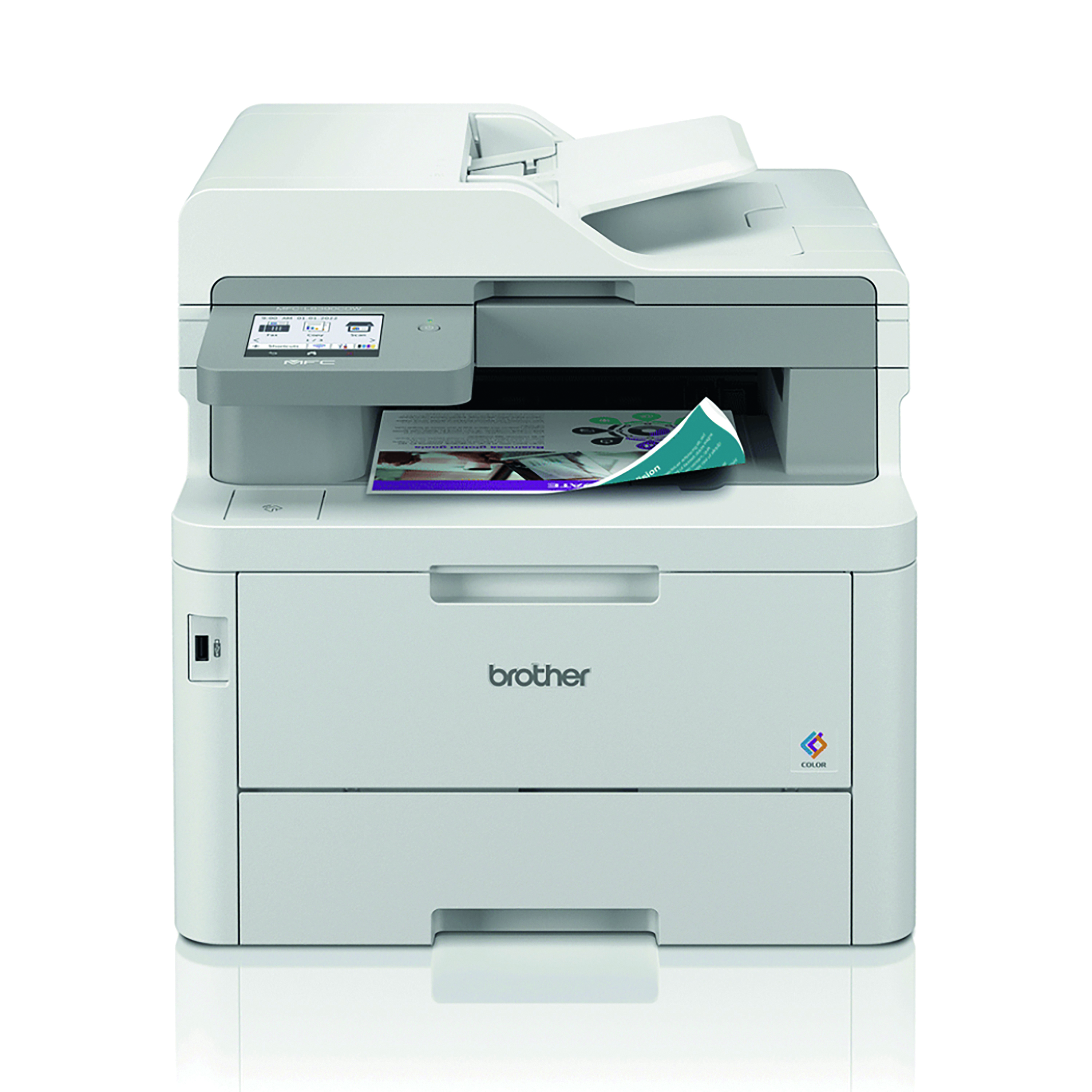 "We love the MFC-L8390CDW because it's the go-to colour multifunction for business use. It features print, copy, scan, fax, all in duplex, wired and wireless network connections, USB host port and NFC. Brother have made it smaller and quieter too, and it utilises LED technology instead of a laser, using less energy without compromising quality."