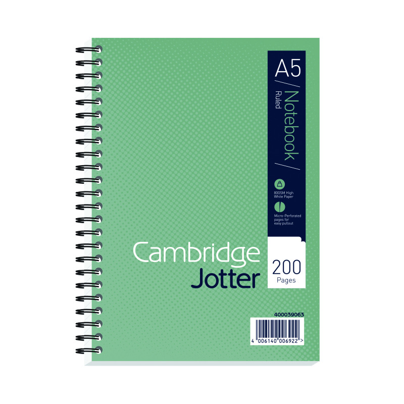 This handy Cambridge notebook contains 200 pages of quality 80gsm paper, which is ruled for neat note-taking. The pages are also perforated for easy removal and filing into a ring binder or lever arch file. The notebook is wirebound, allowing it to lie flat for easy note-taking. The notebook also features card covers with a stylish metallic finish. This pack contains 3 x A5 notebooks.