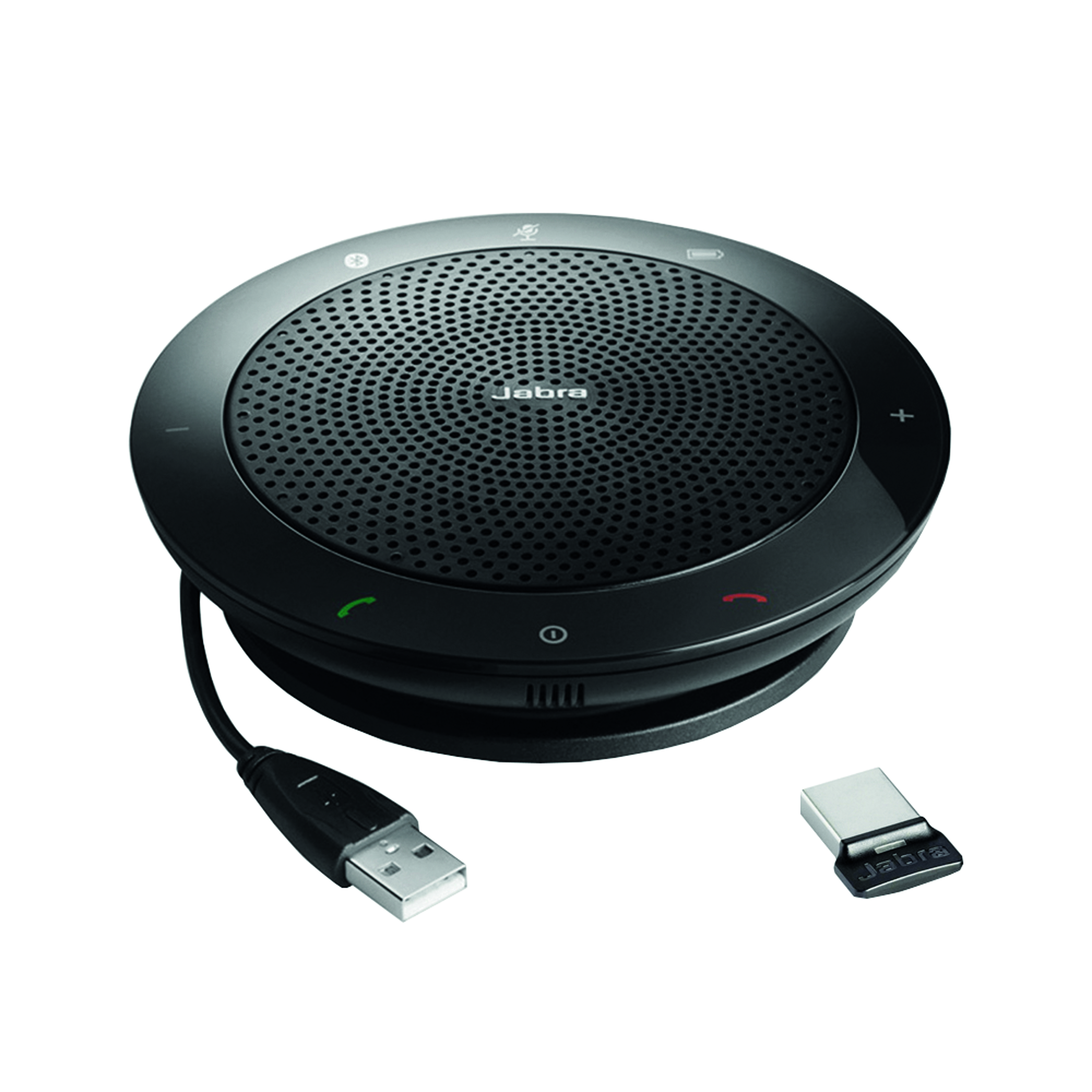 Increase productivity and stay focused wherever you are with the Jabra Speak 510+ MS & 360 Nano Dongle, a portable speakerphone that gives you the power to literally turn any room into a conference room, regardless of your location and your timeline, you can now join the conversation anytime, anywhere.