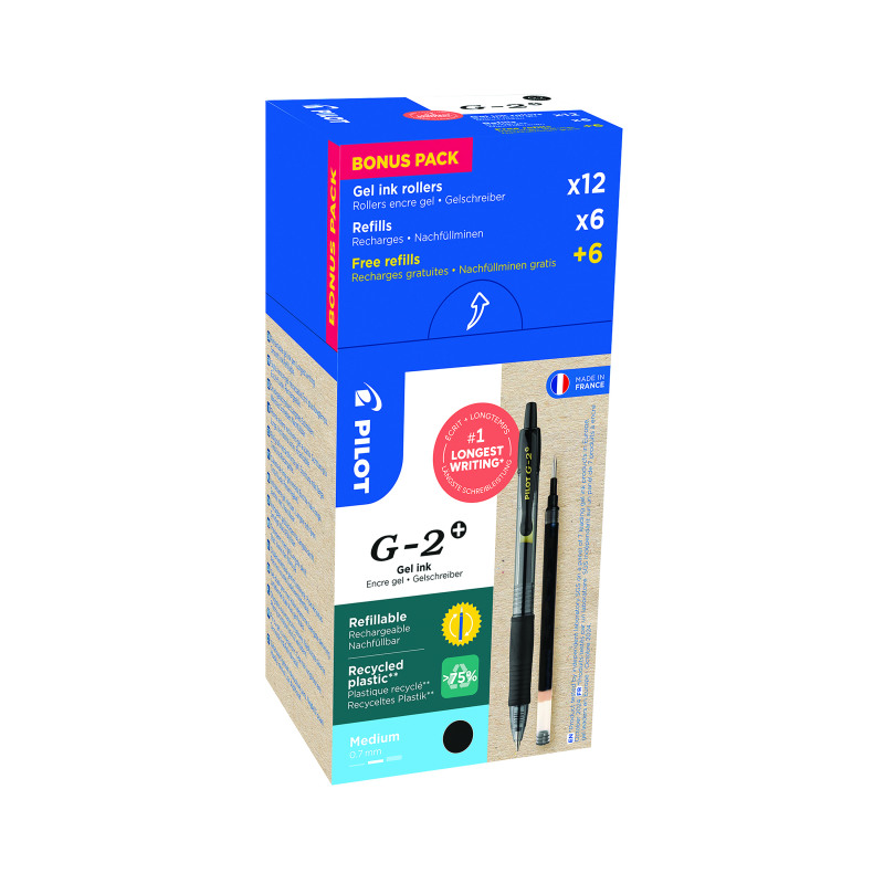 G-2 - The iconic retractable gel ink pen – now made from at least 50%* recycled plastic (12 pens + 12 refills)