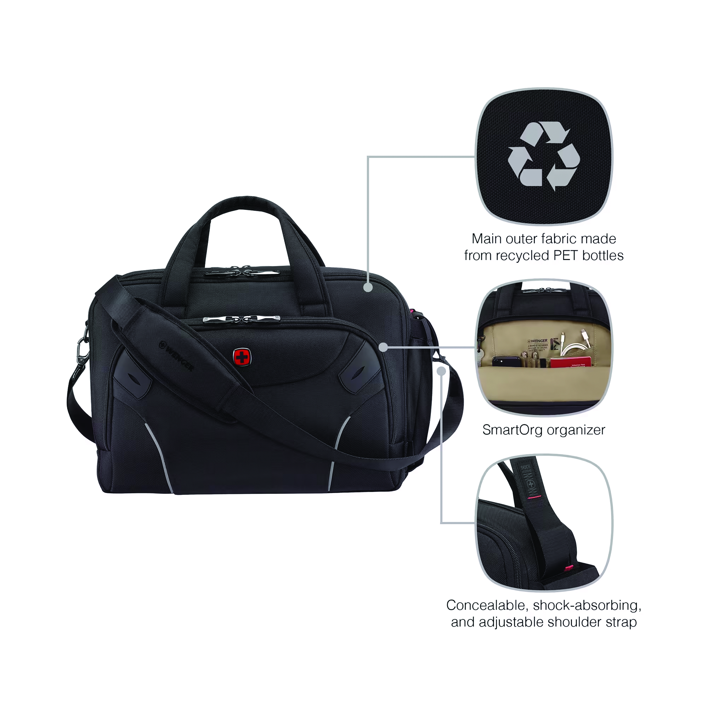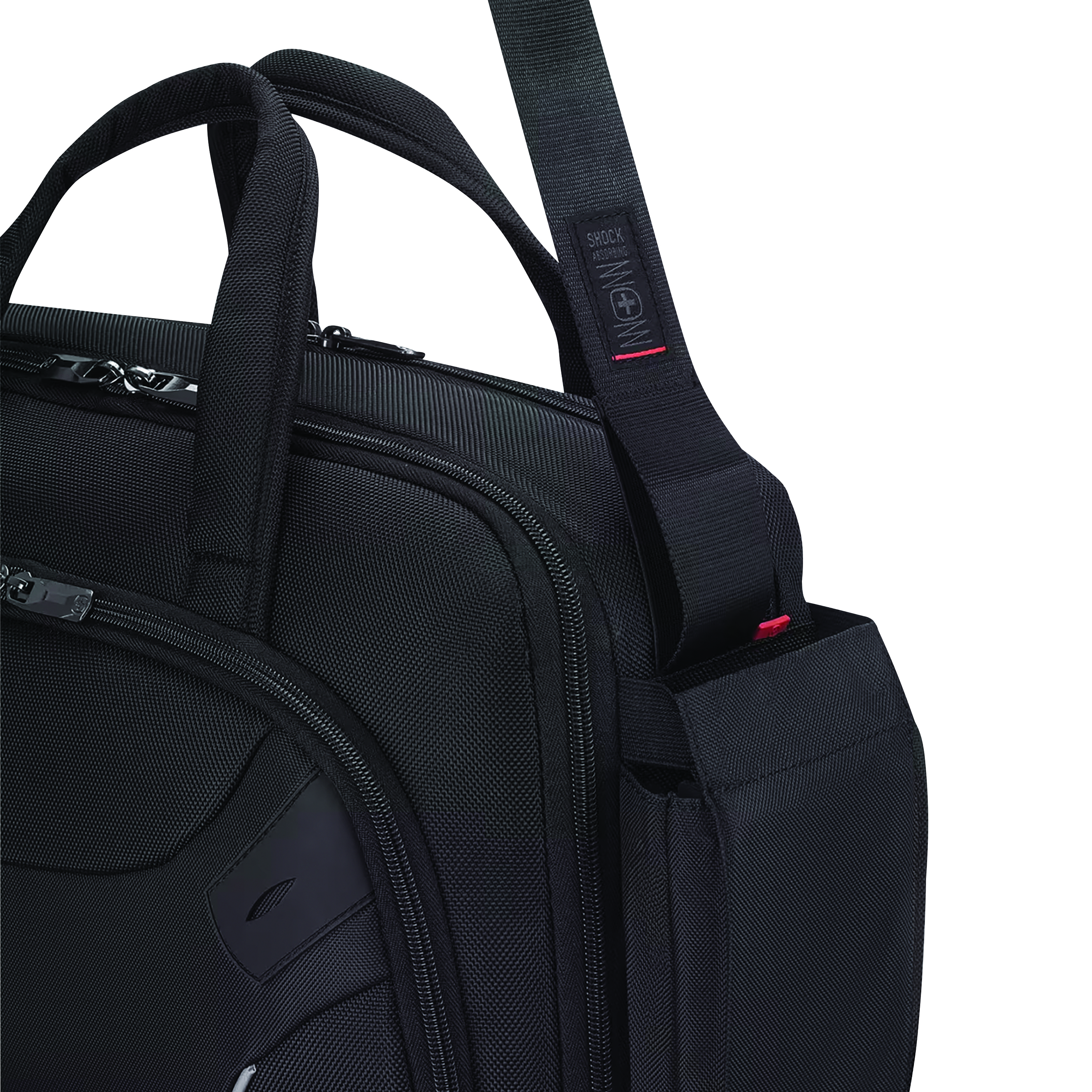 - Concealable, shock-absorbing, and adjustable shoulder strap for maximum comfort